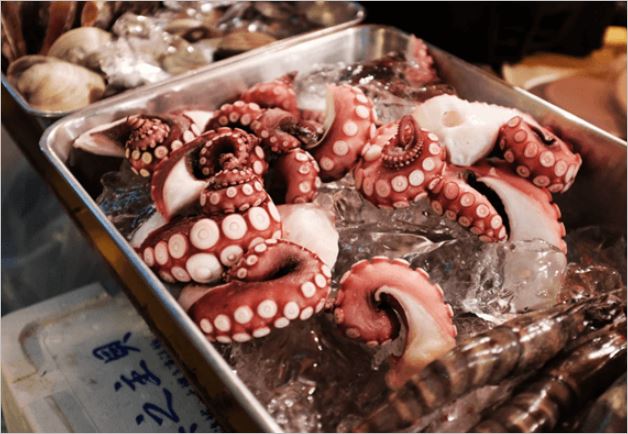 문어는 고단백의 대표 음식으로써 특유의 짭쪼름하면서도 쫄깃한 식감으로 인기가 많습니다. 특히 콜레스테롤을 줄여주는 타우린 성분이 다량으로 함유되어 있어 심혈관 질환 관리에도 매우 좋습니다.
